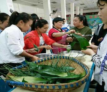 首先,学生科老师介绍了端午节的由来和各地的风俗习惯;接着,老师和学生们一起动手包粽子,折粽叶、填糯米、裹叶子、扎线……一道道工序有条不紊,一个个粽子形态各异,食堂里满欢乐的气氛,大家忙得不亦乐乎。