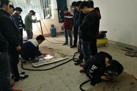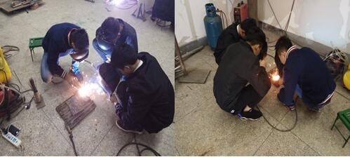 兴趣小组学生在练习氧焊焊接基本操作