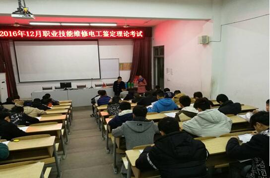 2016年12月9日,我校举行了2016-2017学年度下期维修电工鉴定技能考试。本次考试由学校教务科组织,分为理论和实操两部分,共57人报名参考。