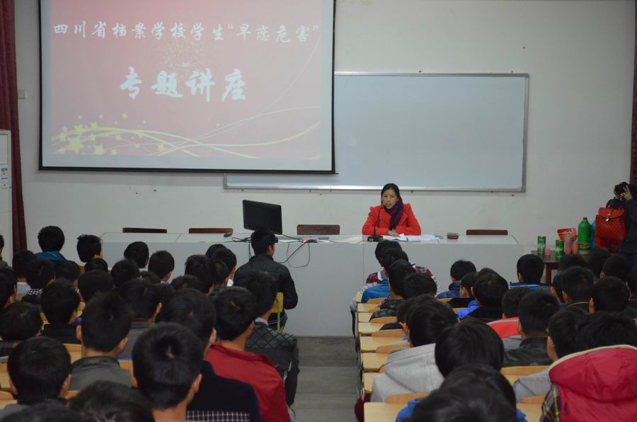 讲座分为二个内容,一是中职生早恋的危害,二是中职生应怎样度过青春期。首先,洪艳老师通过一系列有趣的恋爱心理测试展开。她从心理学角度为同学们讲述了成长中的恋爱现象,并通过幽默诙谐的方式为大家解读了学生恋爱认识中的误区。洪老师还针对学生恋爱中存在的种种问题,给予了广大学生正确的引导和建议。随后,童以鸿副校长主要从恋爱与爱情、异性交往的意义、中职学生恋爱心理误区三方面来阐述学生恋爱问题。他还给同学们提了几点建议:一是中职生如果匆忙进入恋爱,只会弊多利少;二是建议同学要不断完善自己、发展自己,就算失恋也切勿失态、失德、矢智。最后罗树涛、王三刚老师从不同的角度给同学们讲解怎样安全的度过青春期。