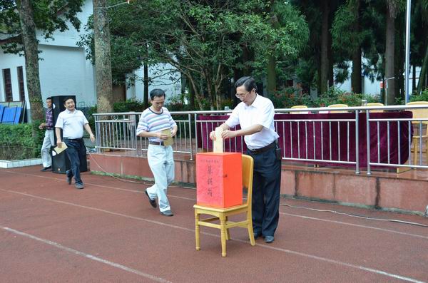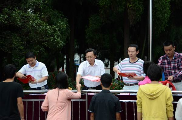 最后,由校长、党委书记徐宏同志做讲话。他首先对我校的新老师、新同学和获奖的集体、个人表示热烈的欢迎和祝贺。紧接着通报了本学年学校所作出的成果,并对所有教师和同学提出了以下几点希望和要求:一是要树立自信心,相信自己是最棒的;二是高度重视人身安全,坚决杜绝任何安全事故的发生;三是进一步发扬良好的学风、教风;四是尊敬师长、爱护学生。