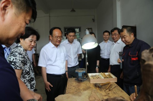 王绍忠一行参观了学校的蓝宇档案管理公司、根雕实训室、继续教育大楼等实训场地,对学校发展的成效、优美古朴的校园环境、充满朝气的人文环境给予了高度评价。
