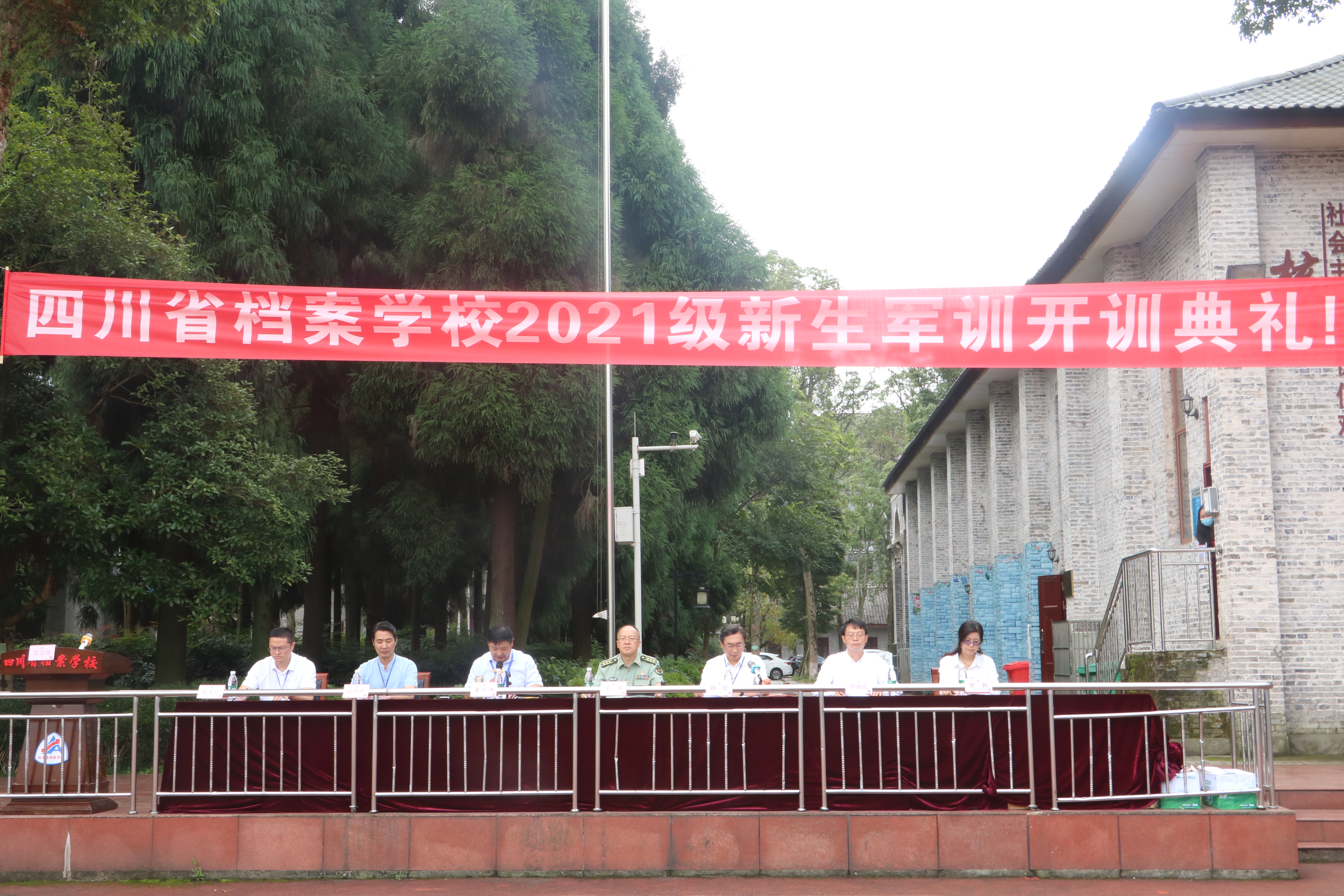 2021年8月30日上午,四川省档案学校在学校操场隆重举行2021级新生军训开训典礼。雅安市雨城区区委常委、人武部部长王军,省档案馆档案信息处处长、省档案校党委书记、校长徐宏出席典礼。