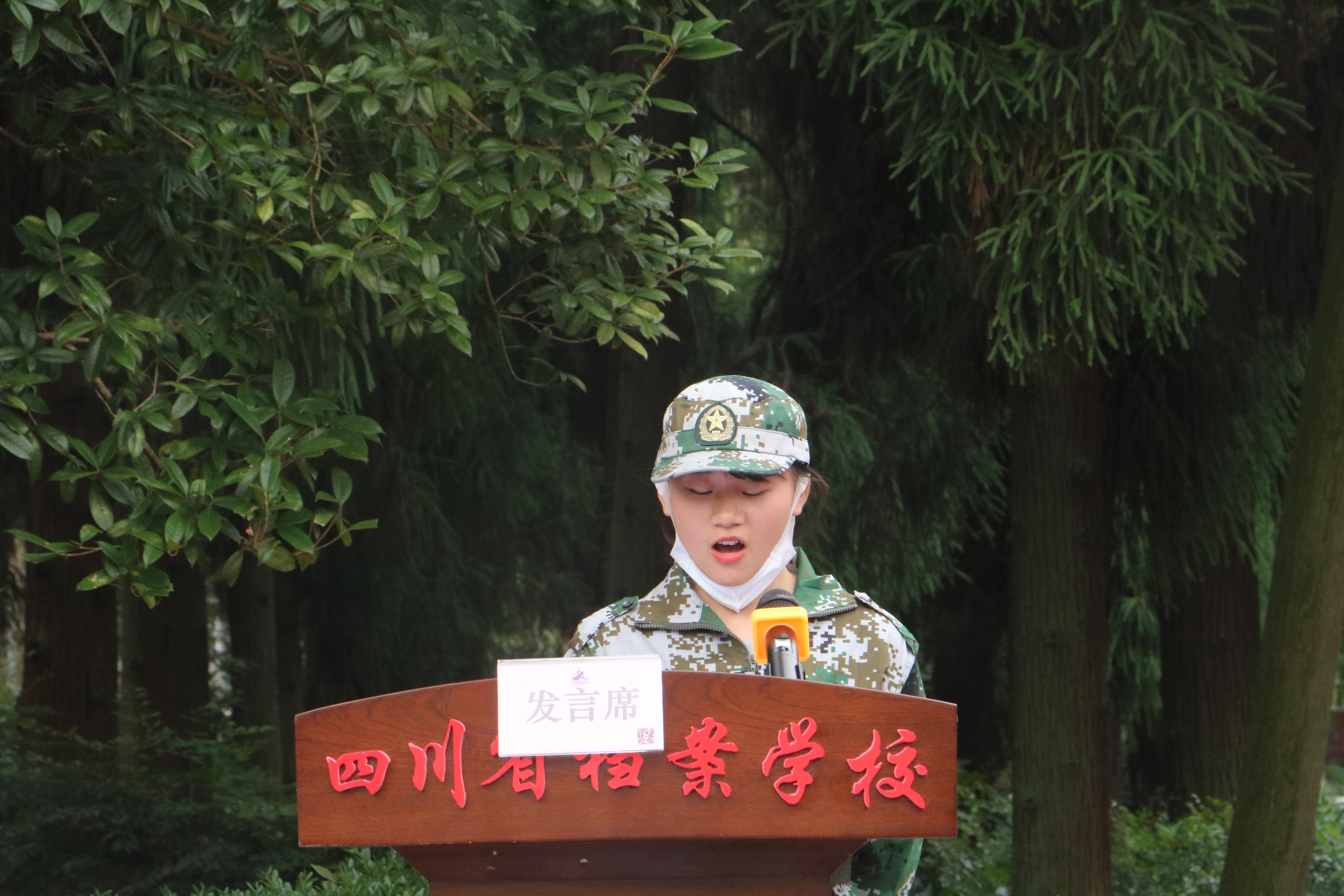 典礼在全体奏唱国歌中拉开帷幕。随后,新生代表高职2021级8班陈俊杰、教官代表杨潇分别做了发言,对完成好军训任务表了决心。