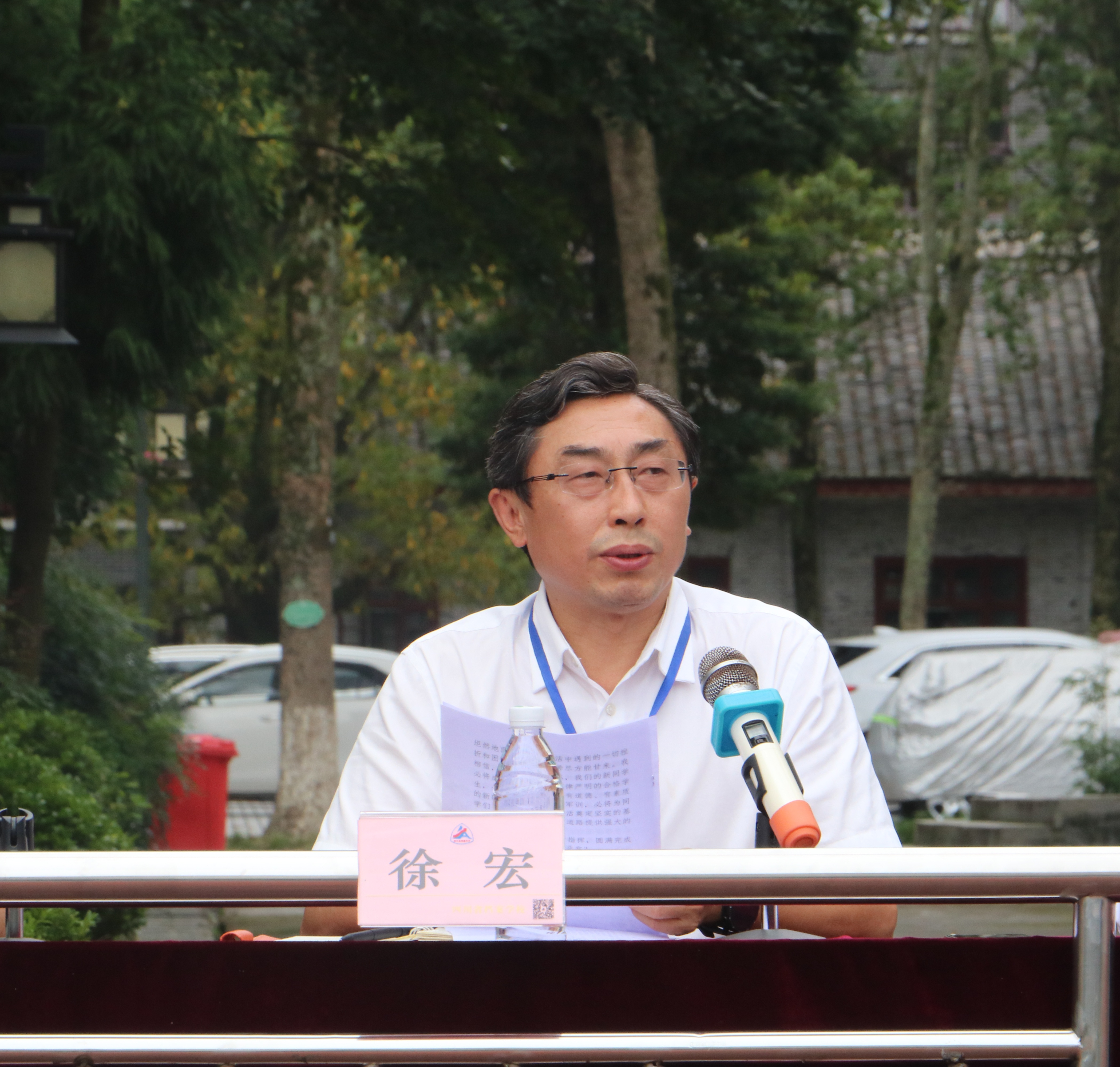 徐宏首先对2021级新生表示热烈欢迎,欢迎同学们来到省级“双示范”建设学校,省部级重点!徐宏对新生提出了三点要求:一是充分认识学生军训的重要意义,增强军训的自觉性,提升国防意识和军事素养;二是要以振奋的精神状态,接受军训的锤炼,通过军训培养坚强的意志和品质;三是学习部队严明的纪律、过硬的作风,自觉遵守学校的各项规章制度。