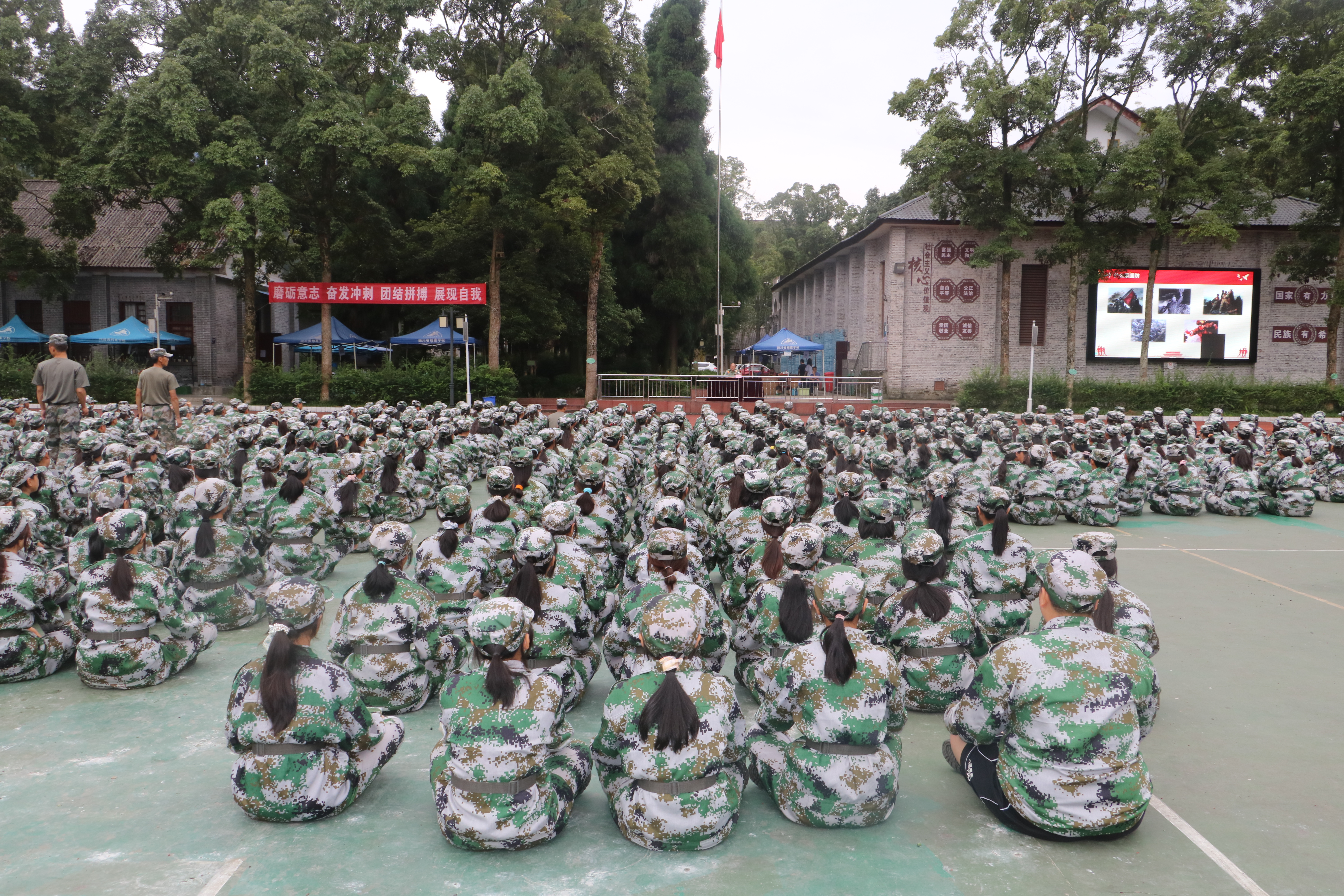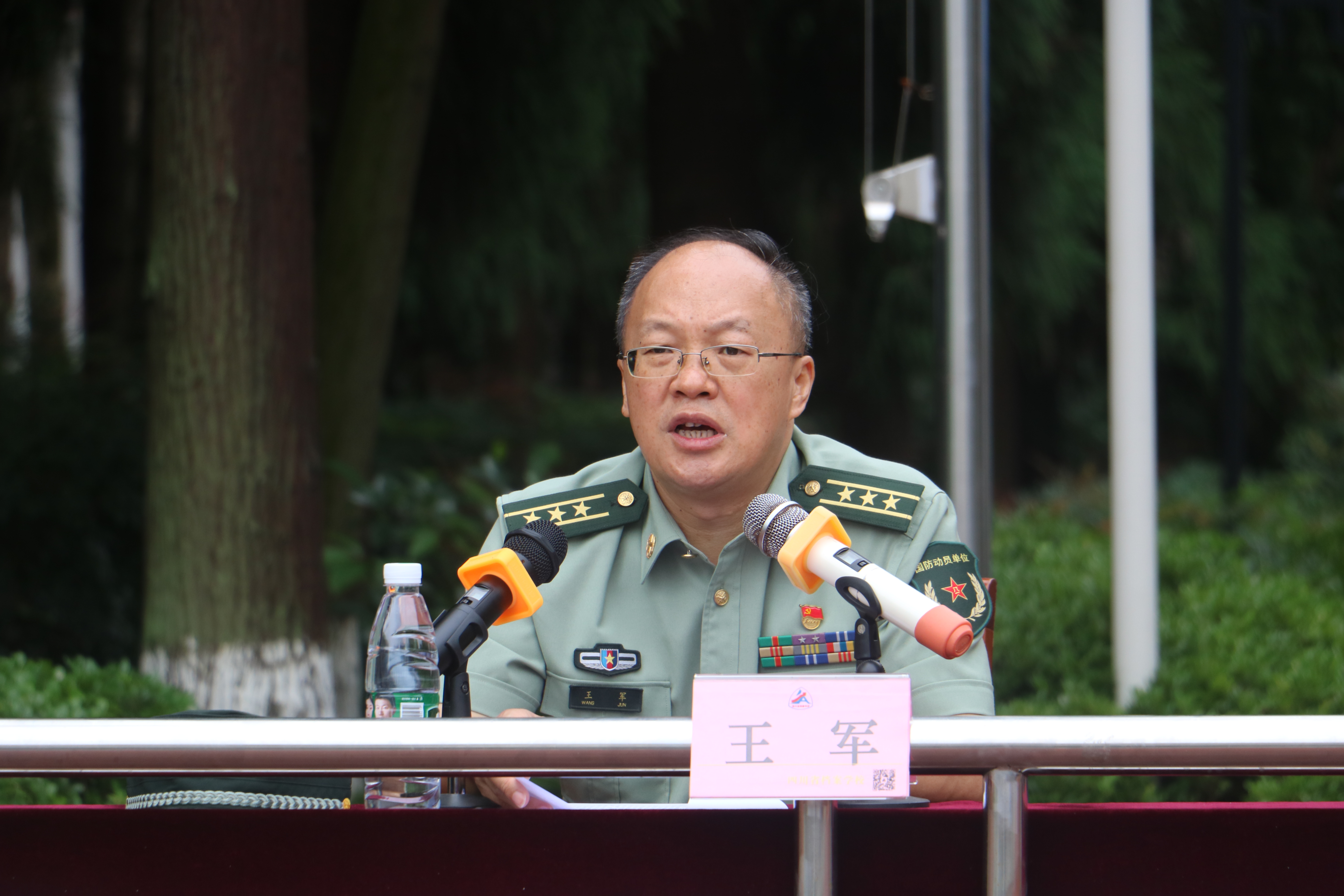 2021年9月8日,雅安市雨城区委常委、区人武部上校部长王军应邀到我校塑胶球场,为1000余名2021级新生开展国防教育讲座。校党委委员、学生科科长郑术兵主持了讲座。