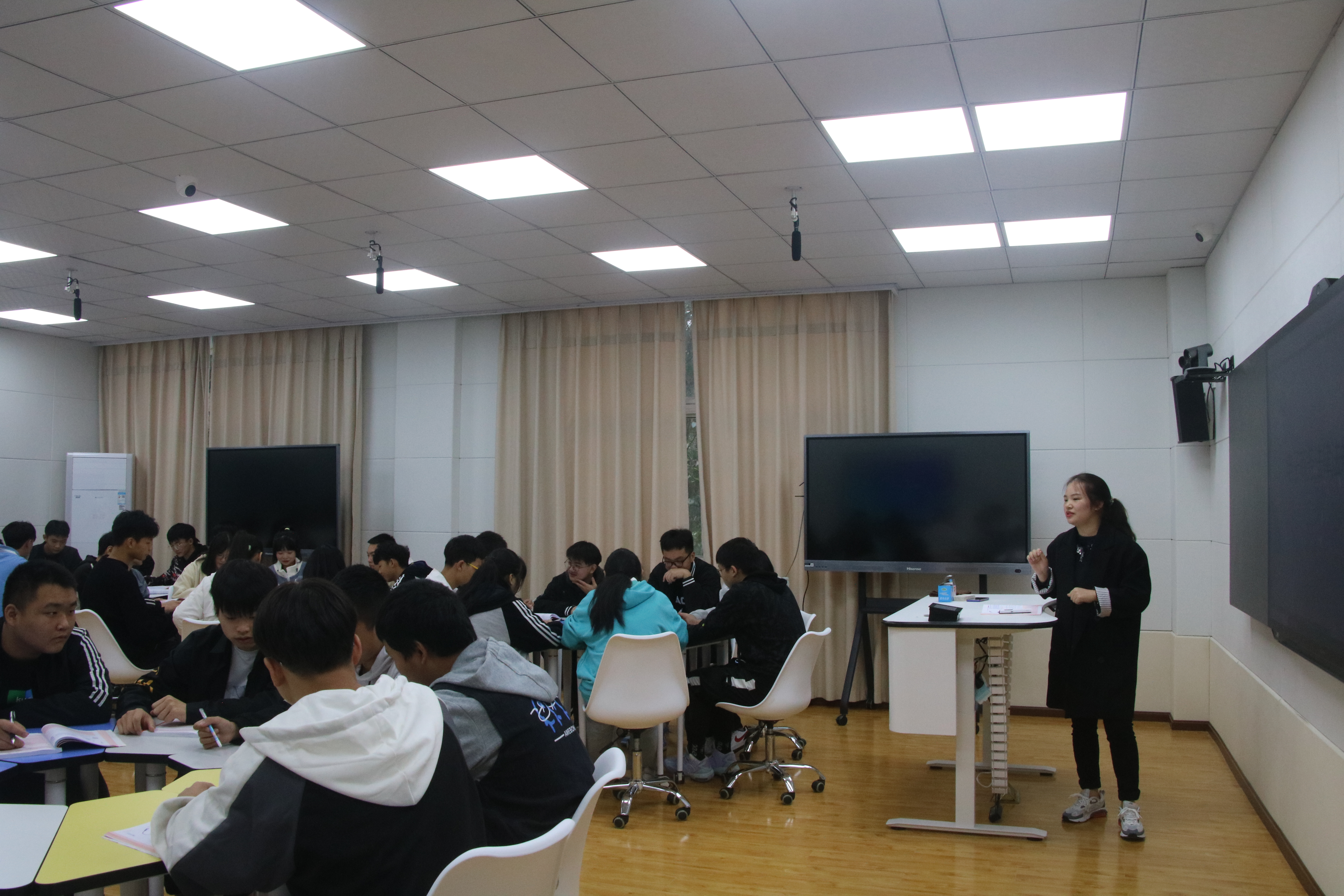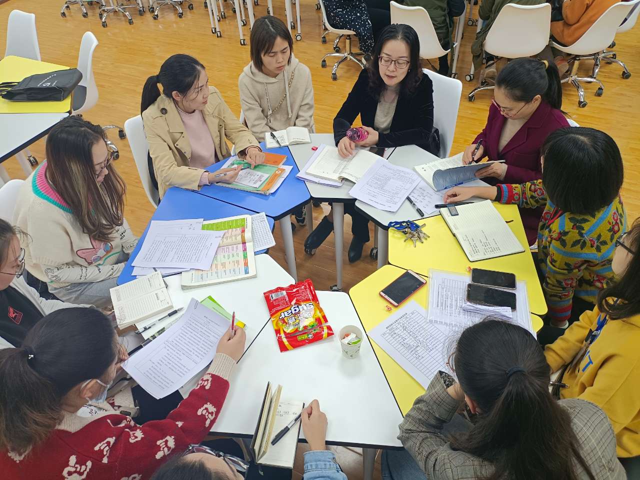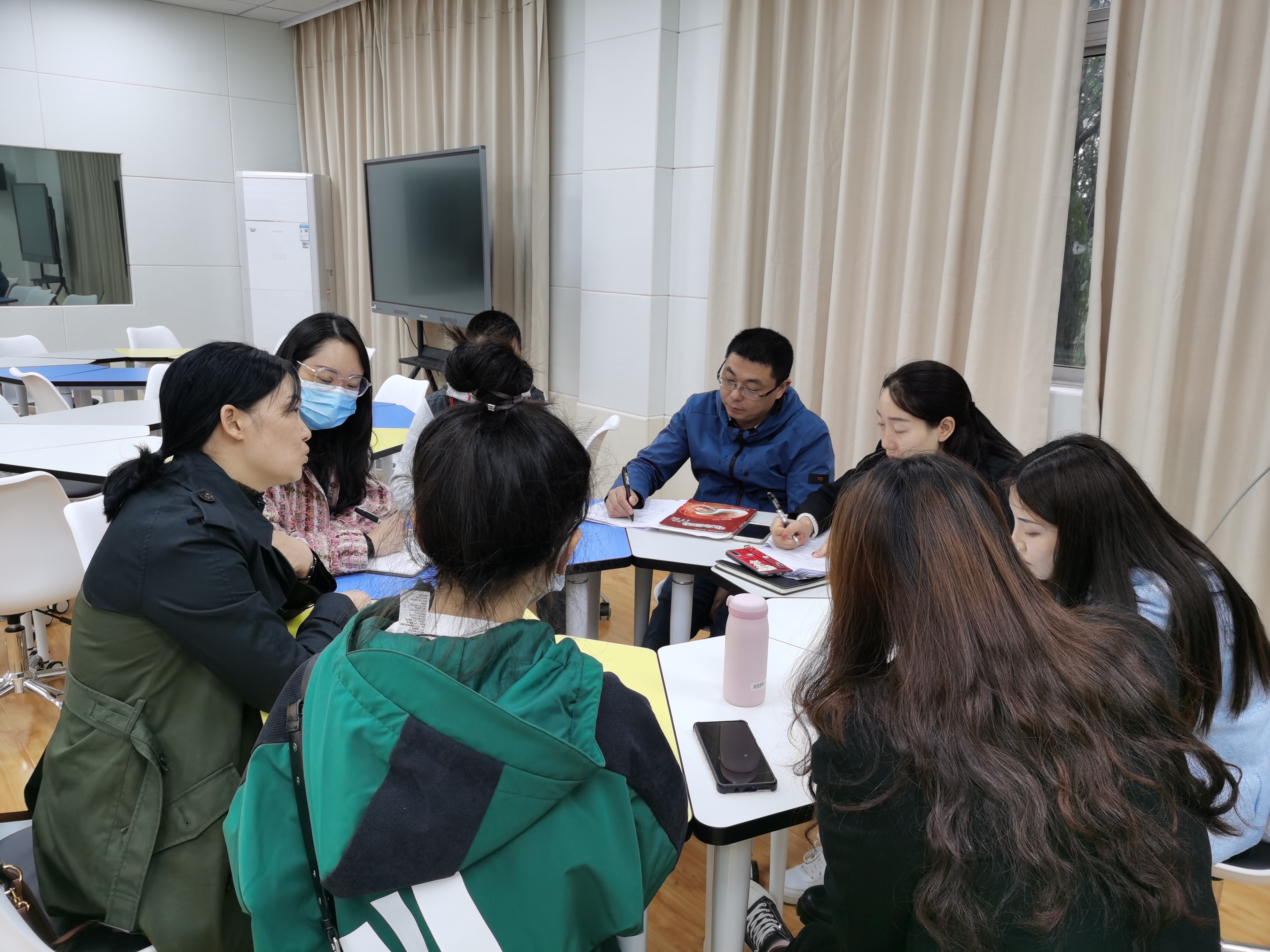 两位专家与各教研组老师分别进行一对一交流,指导老师们要采取“灌输与渗透相结合、理论与实际相结合、历史与现实相结合、显性教育与隐性教育相结合、共性与个性相结合、正面教育与纪律约束相结合”的策略,在教学设计中挖掘“思政”元素,将“思政”元素以“润物细无声”的方式融入课堂教学中,发挥课堂育人功效。
