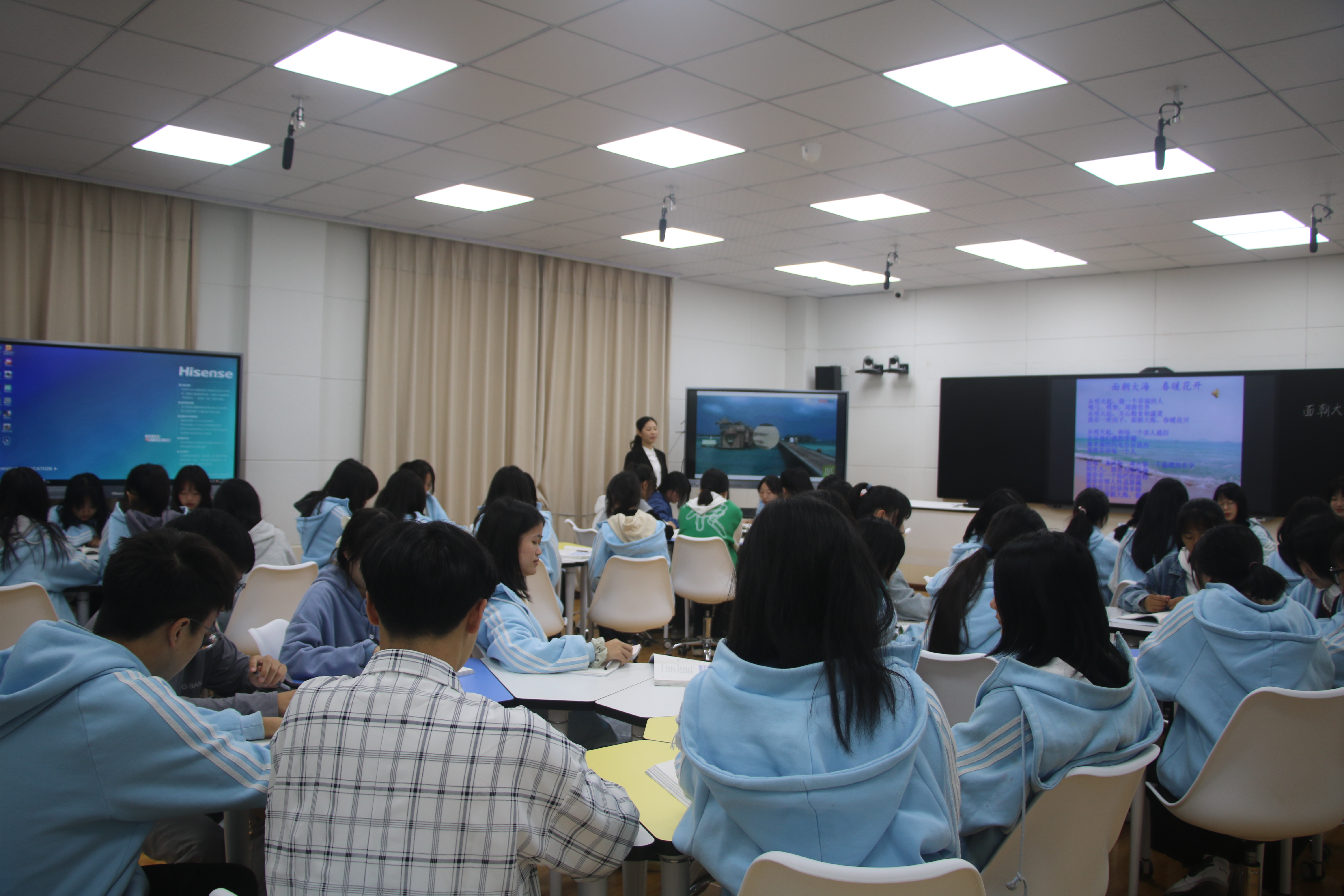 课后两位专家对两位老师的展示课分别进行了点评,充分肯定两位老师的成功之处。同时,也提出在课堂中融入“思政”元素,要把握“短、新、近”的特点,即引入“思政”时间不要太长、2-3分钟适宜;用新发生、关注度高的事;以身边的人和事为案例,将“思政”元素与课堂教学有机融合。