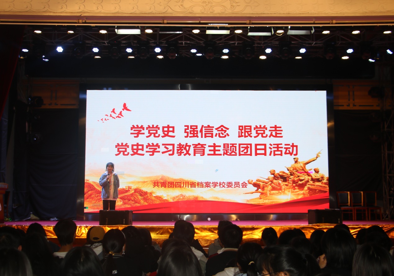 为学习贯彻习近平总书记在党史学习教育动员大会上的重要讲话精神,把开展党史学习教育作为加强共青团思想建设的重要内容,引导团员青年从党史中启迪思想、坚定信念、获得力量,增强听党话、跟党走的思想和行动自觉,校团委于4月15日下午在大礼堂组织开展了党史学习教育主题团日活动。2019级、2020级各班团支书及团员共90余人参加活动,活动由学生团总支书记龙巧主持。