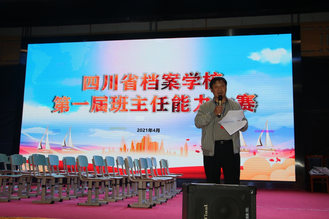 为落实立德树人根本任务,贯彻国家、省《职业教育改革实施方案》有关精神,推动学校加强班主任队伍专业化建设,提高学生管理和德育工作水平,提高班主任的综合素养和专业能力,4月23日下午,四川省档案学校第一届班主任能力大赛在大礼堂举行。学校副校长童以鸿,人事科科长、离退办主任代凌燕,高级讲师吴红艳、戴剑兰,9+3驻校教师王德琼,学生科副科长罗莉应邀出席大赛并担任评委,2019级、2020级班主任近50人观看。大赛由校团委副书记师泽波主持。