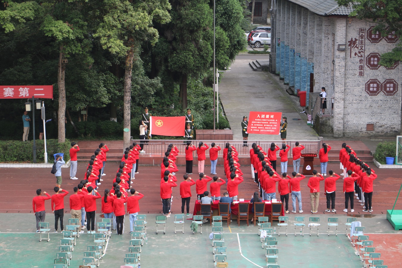 6月1日下午,四川省档案学校在操场隆重举行党史学习教育主题团日活动暨2021年第一批学生团员集中入团仪式,共同见证97名新团员加入共青团的光荣时刻。学校党委副书记、纪委书记李富民出席仪式并讲话,党委委员、团委书记、学生科科长郑术兵,团委副书记师泽波,第一党支部组织委员周红,青年教工团支部书记周锦鹏,以及300余名新、老团员和业余团校积极分子参加仪式。仪式由学生团总支书记龙巧主持。