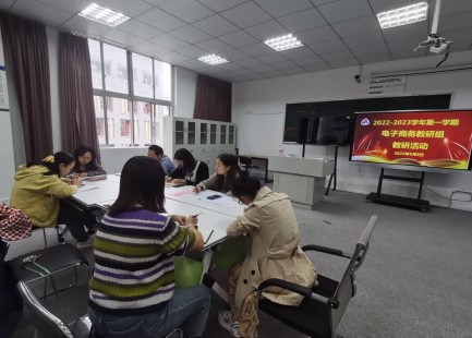 电子商务专业教研组研讨制定了本学期教研活动计划;要求提高学生参加“1+X”网店运营初级证书考试过关率;承办好2022 年“中行杯·四川省职业院校技能大赛”电子商务技能赛项。