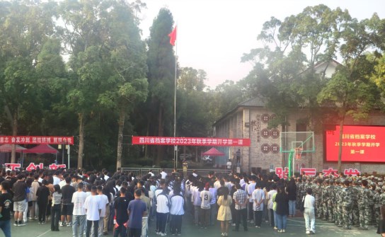 2023年9月4日,四川省档案学校2500余名师生回归校园,利用升旗仪式开展了2023年秋季学期开学第一课。