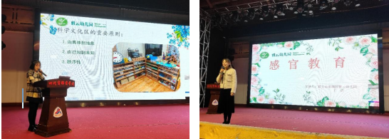 最后的案例分享环节,老师们纷纷通过视频向大家展示了平时如何组织教学,如何引导孩子选择适合的教具完成“工作”,从而达到教学目标,同时也让大家看到不同的孩子在学习过程中的成长和改变。