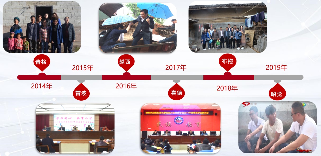 真情关爱,家访暖心。学校的家访足迹丈量着彝区“9+3”地区每一寸土地。2014以来,学校领导带领教职工200余人次,家访了凉山州全部10个彝区“9+3”县的600余名学生,发送慰问金12万多元;分别在喜德、布拖等9个县召开共有1300余人次参加的家长会。家访路途虽然艰辛曲折,但每年每次家访都是一次次暖心之举,使学校和学生家庭建立了深厚的友谊和信任关系,让学生感受到了特别的温暖,激励着他们刻苦学习。家访更增强了老师们的责任感和使命感,促进老师们对学生投入更多的关心关爱。