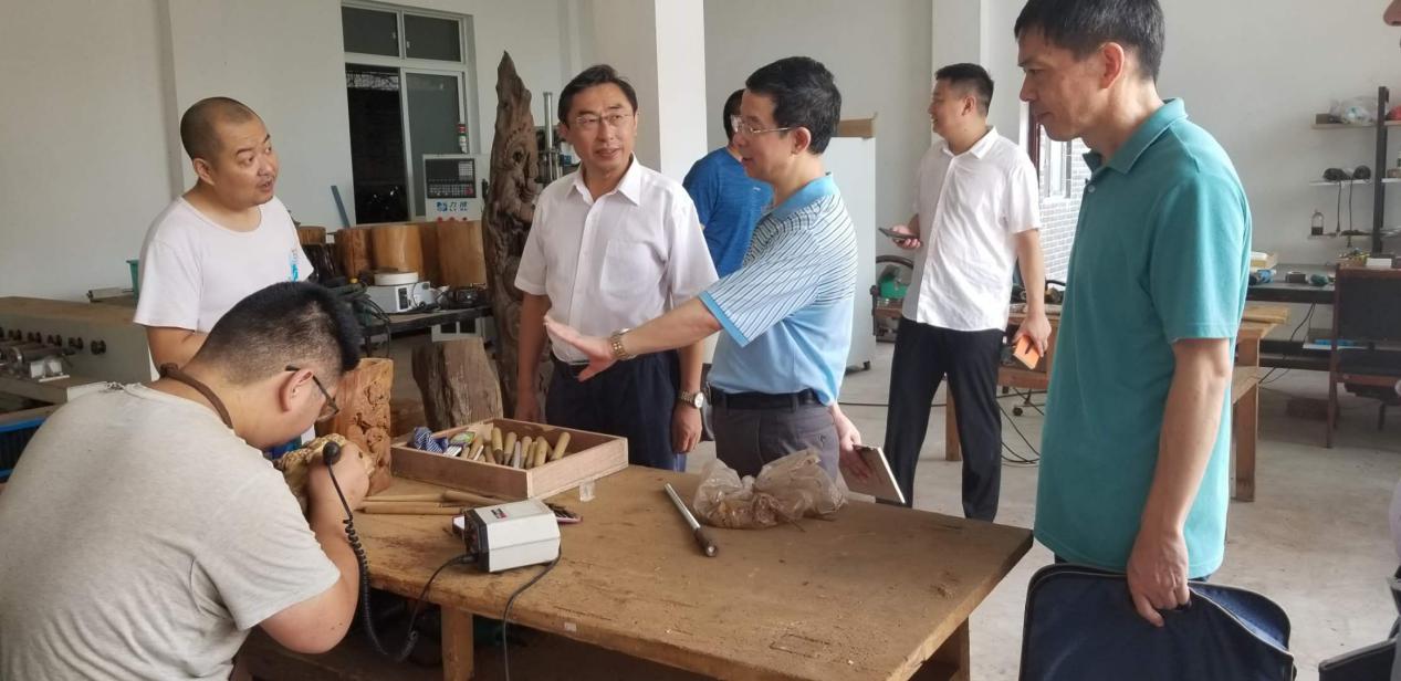 张大金一行先后查看了工业机器人实训室、档案管理实训室、根雕实训室和校办企业,对学校悠久的办学历史、古朴典雅的校园风貌、灵活多样的办学模式表示高度赞扬。