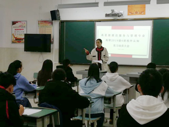 为加强学生对专业知识的进一步了解,保证实习工作稳定高效推进,2019年10月25日,我校开展了高星级饭店运营与管理专业2019级学生的校外认知实习动员会议。